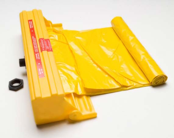 Large, catastrophic leaks flow into the bladder through a bulkhead fitting. Protective "trap door" opens automatically to allow bladder to unfurl.